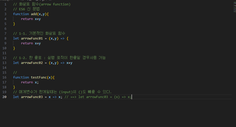 그리고 함수중 화살표 함수(arrow Function)은 매우 간결하게 사용도 가능하다.