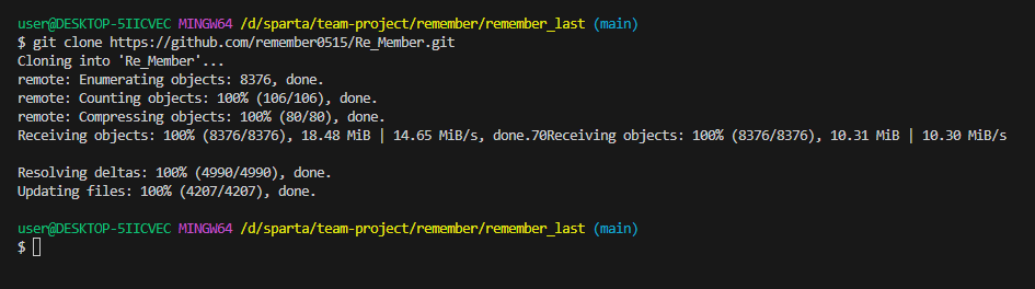 $git pull -f origin main 강제로 풀링해오는 명령어를 입력해도
