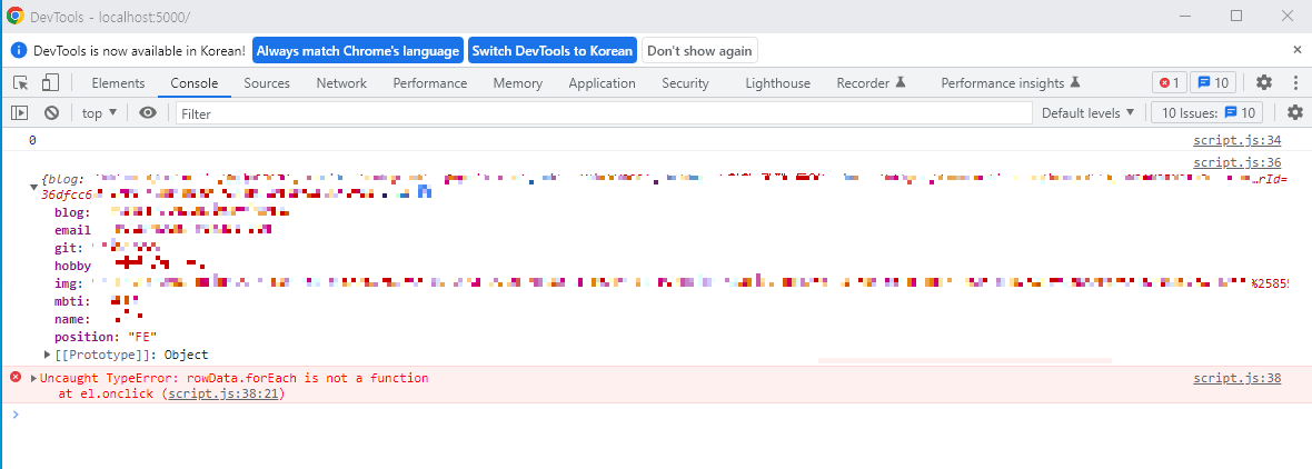 rowData.forEach((a)=>{ //여기가 문제라는데 forEach를 안돌려도 안나옴 ㅠㅠ
