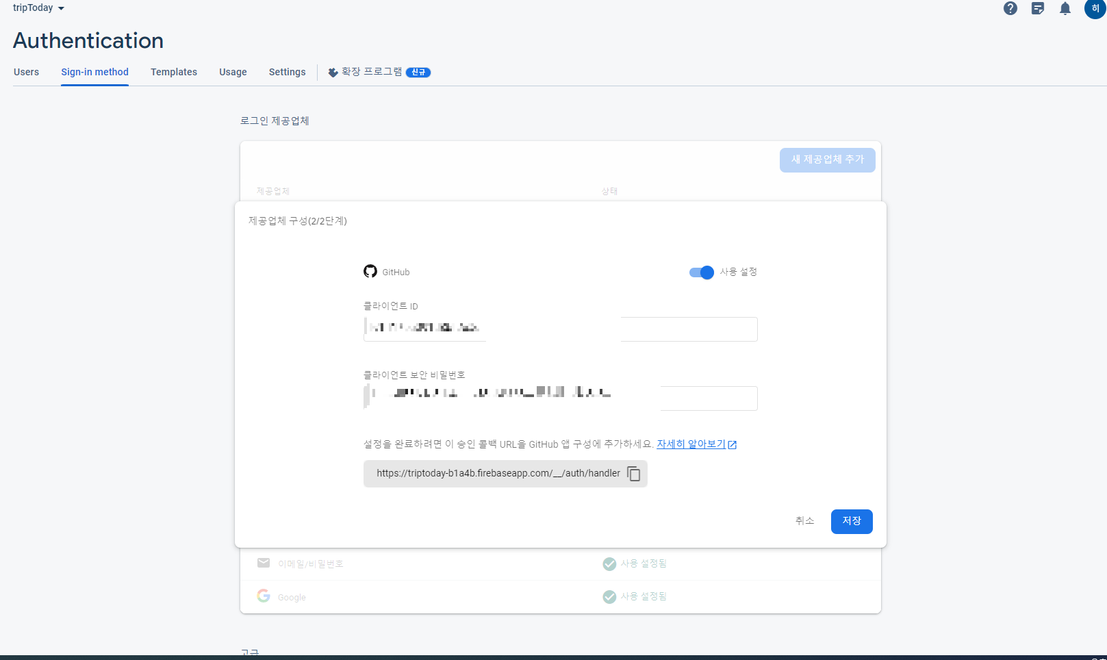 깃허브또한 파이어베이스 Authentication 에서 sign-in method 탭으로 들어가서 새 제공업체 추가 !