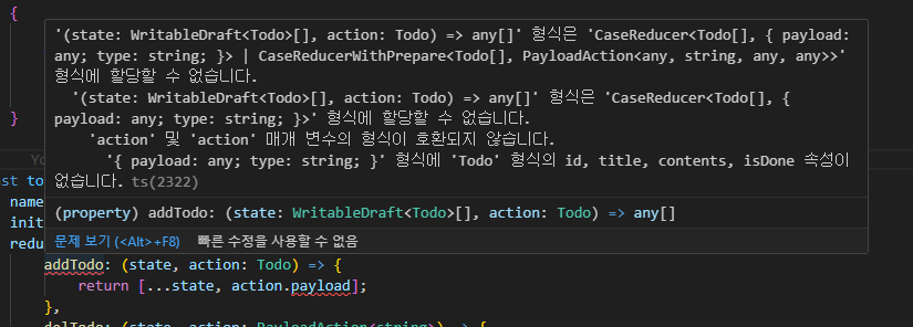 그래서 addTodo의 경우는 선언해둔 type Todo를 넣으면 되겟지?